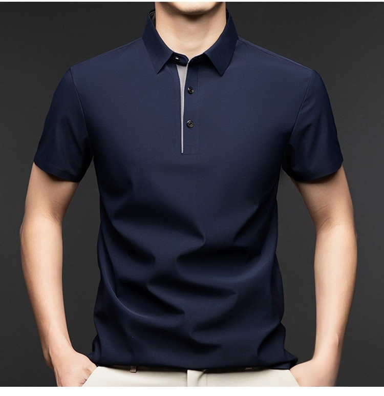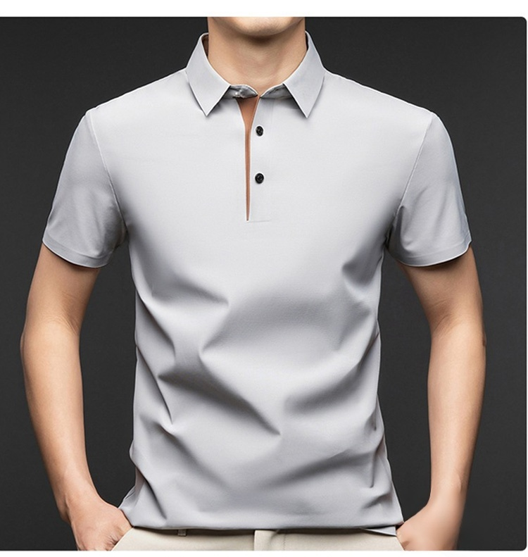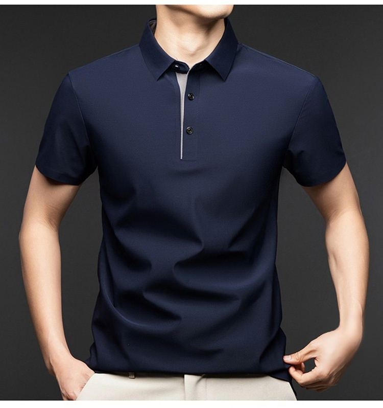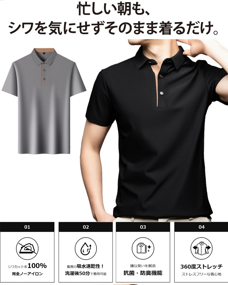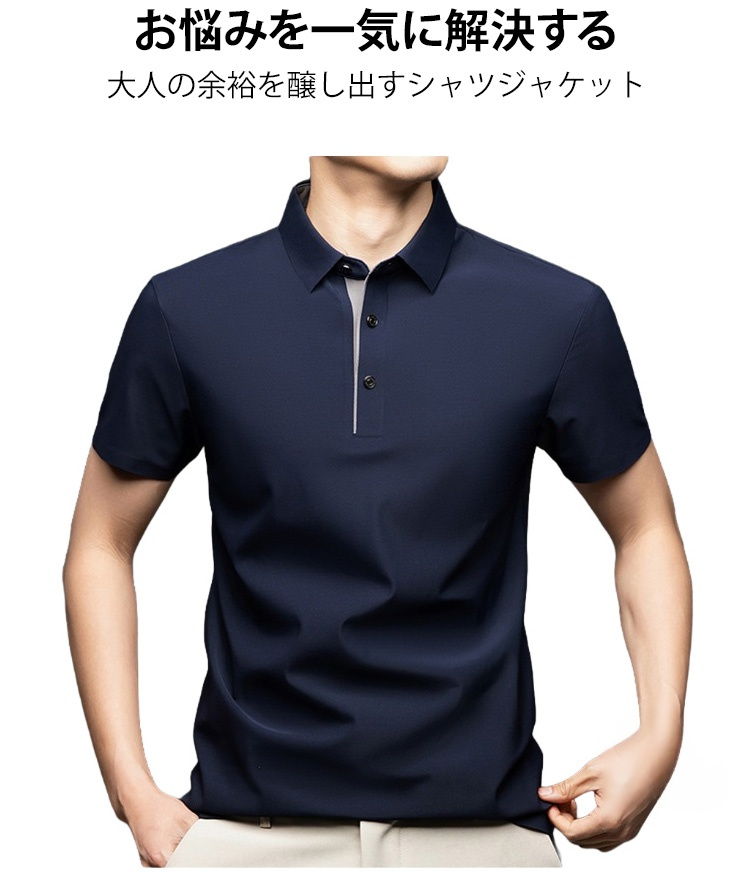 夏用メンズ半袖ポロシャツ アイスシルク涼感素材 4方向ストレッチ  薄手 シワ防止 アイロン不要 メンズ速乾襟付きTシャツ